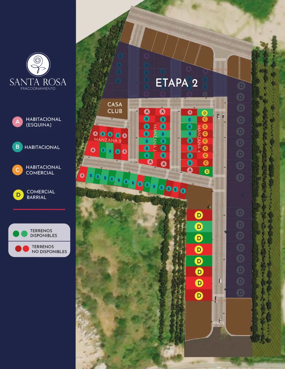 Explore el plano para descubrir los diferentes terrenos disponibles y sus características. Conozca la distribución y los espacios que mejor se adaptan a sus necesidades.